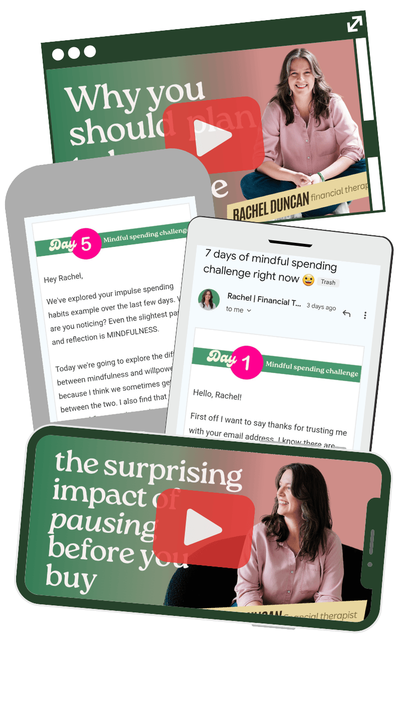A gentle, email-based intro to financial healing. No pressure. No live calls. Just thoughtful, private prompts with videos to help you get started with mindful spending (and get Rachel’s vibe).