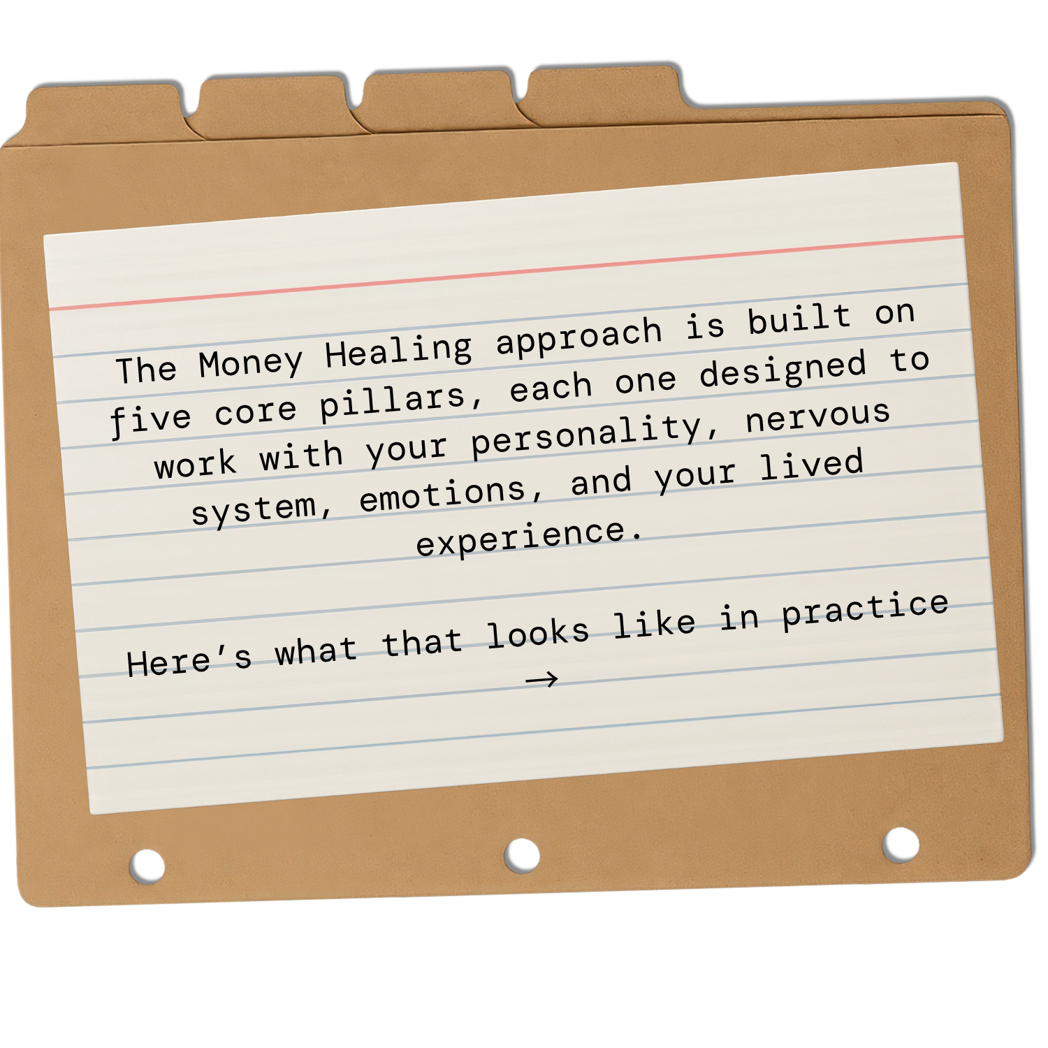 The Money Healing approach is built on five core pillars, each one designed to work with your personality, nervous system, emotions, and your lived experience.